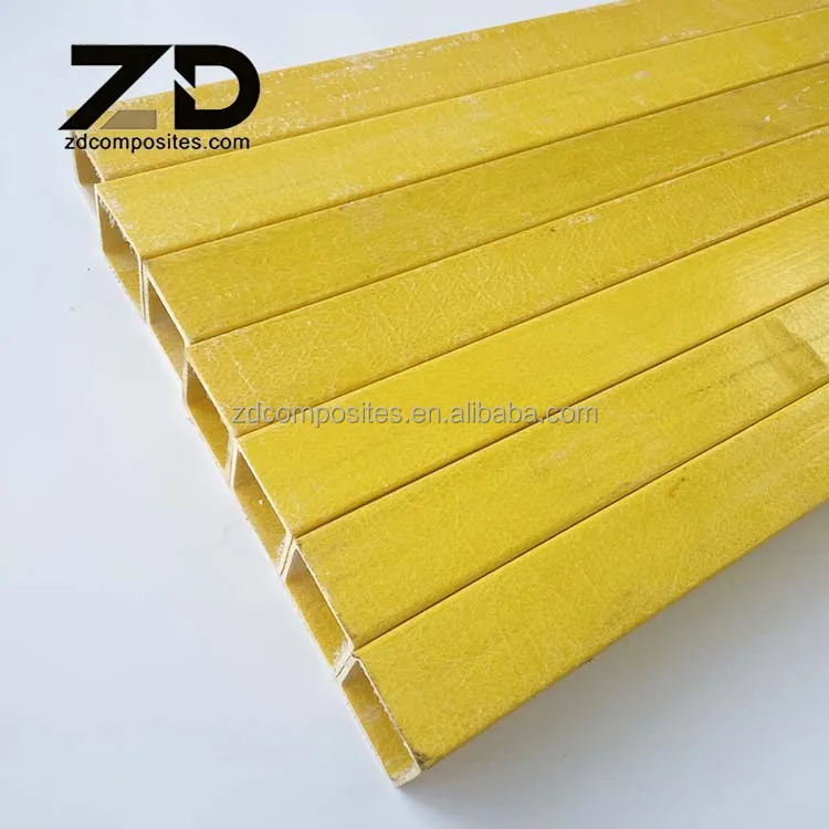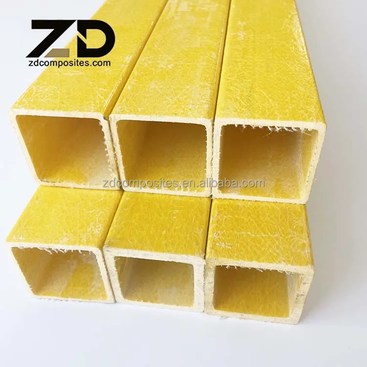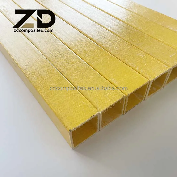 פרופילים מפולטרוזיה מפיברגלס, צינורות ריבועיים מבניים, צינורות FRP חלולים, פרופיל קומפוזיטי של פיברגלס צהוב